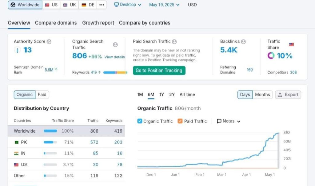 We provided SEO services by conducting a complete audit, optimizing on-page elements, fixing technical errors, and implementing a targeted keyword strategy. We also improved site speed, enhanced mobile performance, and built high-quality backlinks to strengthen domain authority. These efforts helped the website achieve stronger rankings for competitive keywords and increased its overall visibility on Google.
